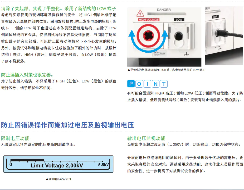 TOS5300系列是對電器產品必須進(jìn)行**確保4項測試中的耐電壓測試,絕緣阻(zǔ)抗測試的測試儀器。輸出(chū)為5kV/100mA(AC) ,6kV/10mA(DC) ,基於(yú)在IEC ,EN,UL ,VDE ,JIS等各國**規定或電器產品**法(fǎ)的要求之(zhī)上(shàng) ,可(kě)對電子器械(xiè) ,電子部品進(jìn)行耐電壓/絕緣阻(zǔ)抗測試 。還有 ,採用了新研發的開關放大(dà)器,使測試電壓的穩定性(xìng)更高。因為不受AC輸入端電壓和頻率變(biàn)化的影響,可(kě)保持穩定的輸出(chū)電壓,所以在電源(yuán)環(huán)境不穩定的區(qū)域也可(kě)進(jìn)行穩定 ,安心(xīn)的測試。同時還具備了可(kě)對應各式各樣客戶要求的各種功能 。TOS5300系列是一款基於(yú)操作性(xìng)・實用性(xìng)・**性(xìng)為一體的機型 。